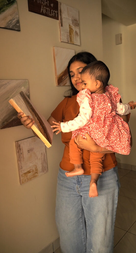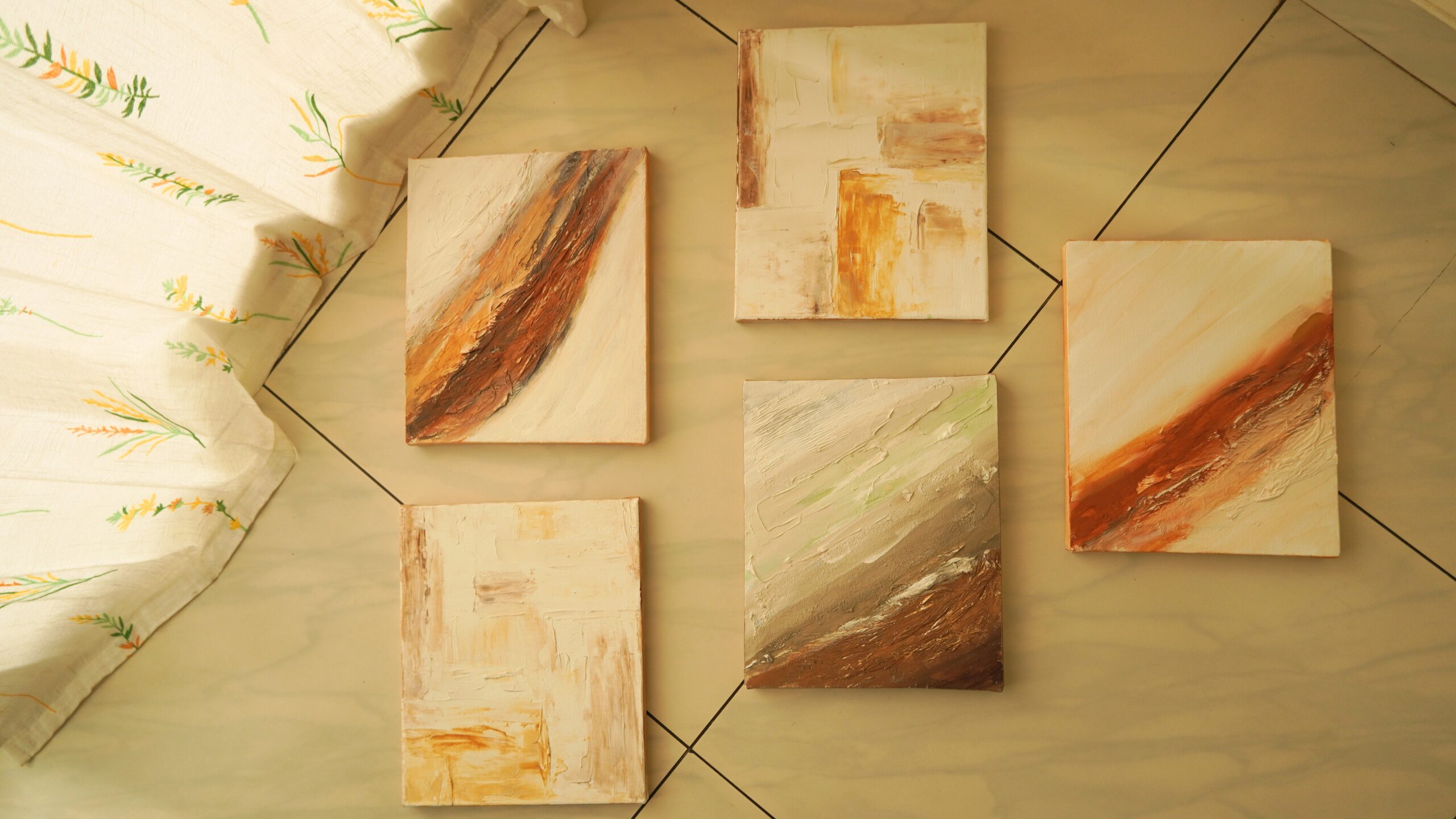 When I started creating In the Space Between, I chose a palette of modern neutrals, soft whites, and gentle greens for a reason. These colors bring a sense of calm and renewal—like taking a deep breath in the middle of a busy day. The textures in the artwork echo the complexity of life’s layers—some smooth, some rough, all part of a meaningful whole. Each brushstroke and tactile surface invites you to slow down and feel the depth beneath the surface, reminding us that peace and growth are woven into the everyday moments.