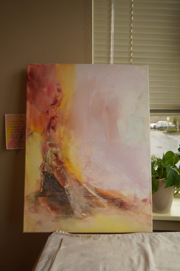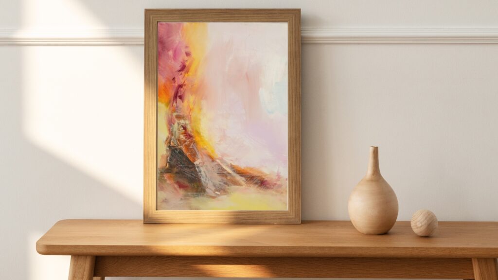 This is not just a painting; it’s an invitation. An invitation to embrace your own inner radiance and to stand tall in your own spotlight. Let “Girl in a Gown” be a reminder that the most breathtaking sunsets often live not just in the sky, but within ourselves. Bring her fiery spirit into your home <3