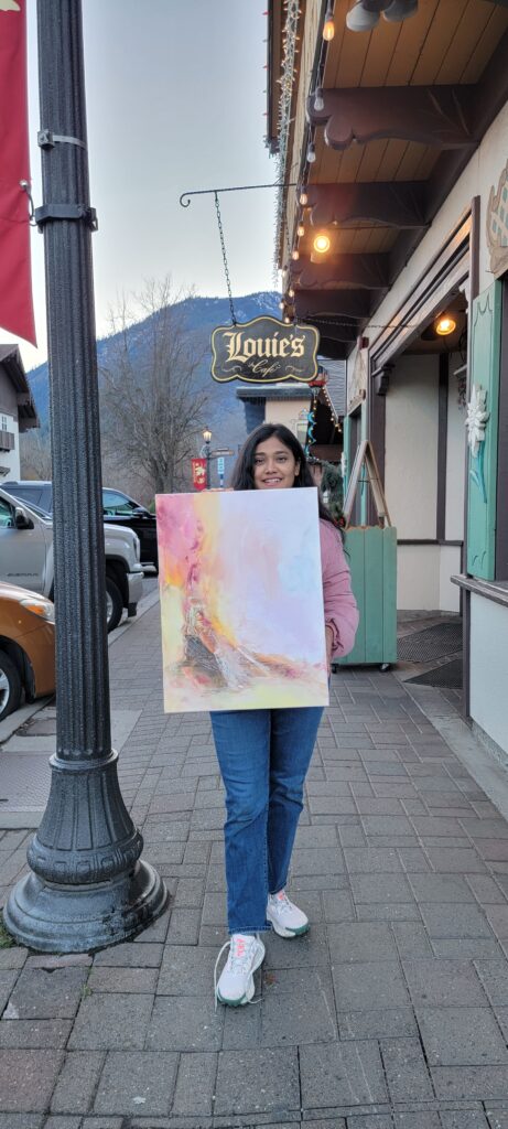 In this abstract art, you’ll find the echo of every girl who has ever dreamt big, who has ever twirled under the sun’s spotlight, feeling unafraid and magnificent. She stands tall, not just in stature but in spirit. The composition radiates confidence, her form unwavering against the swirling backdrop. She is the heroine of her own story, bathed in the warm glow of self-acceptance and self-love.