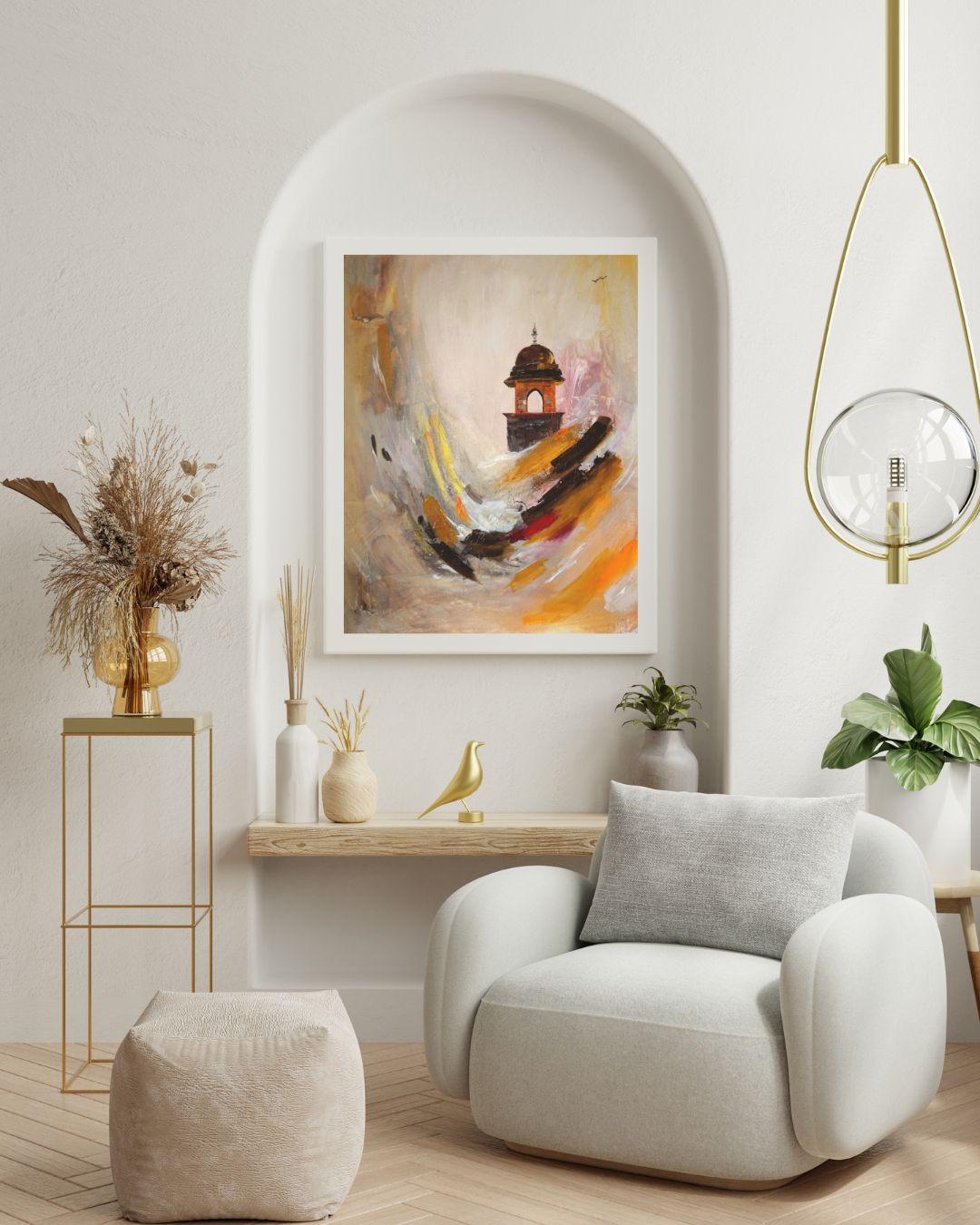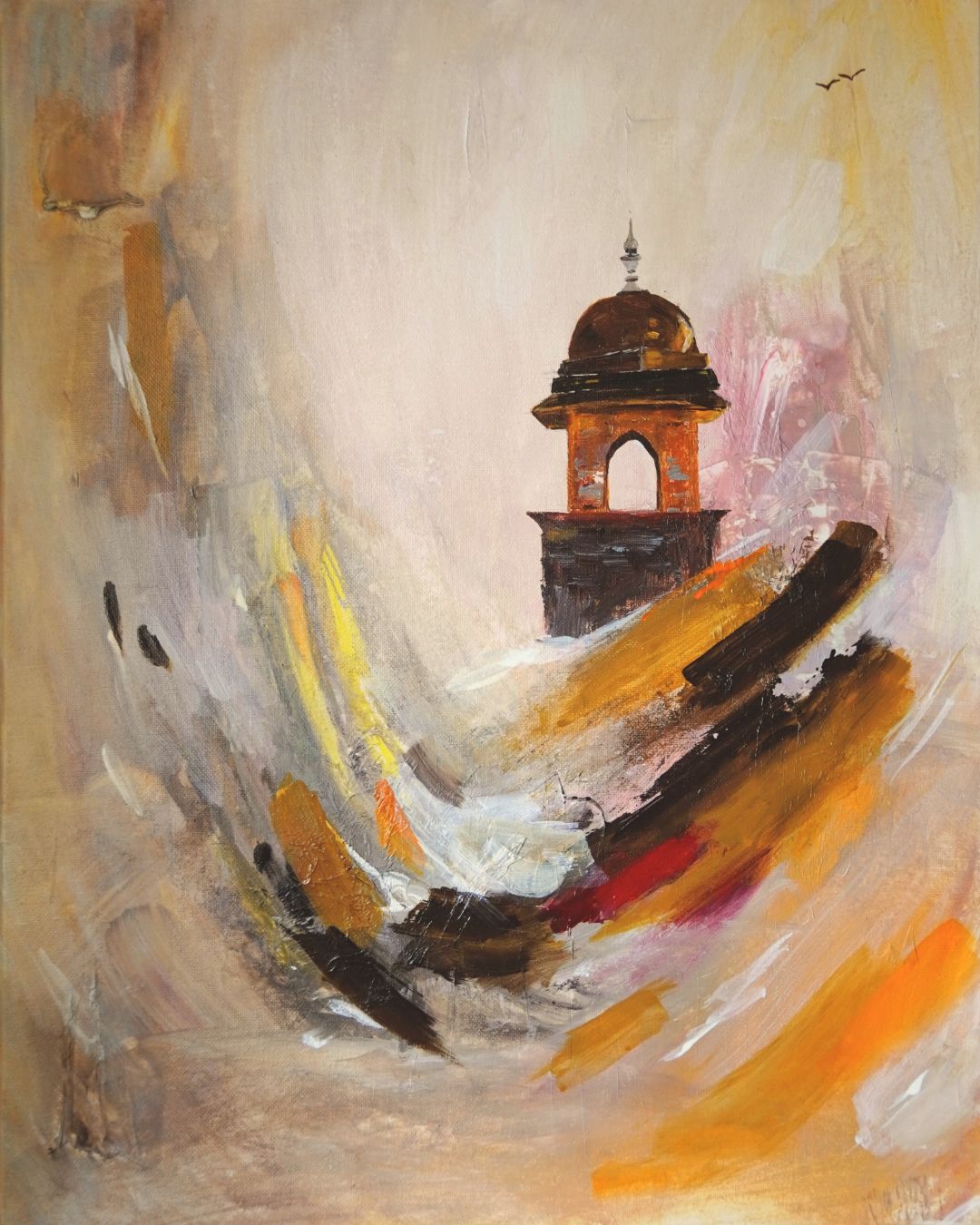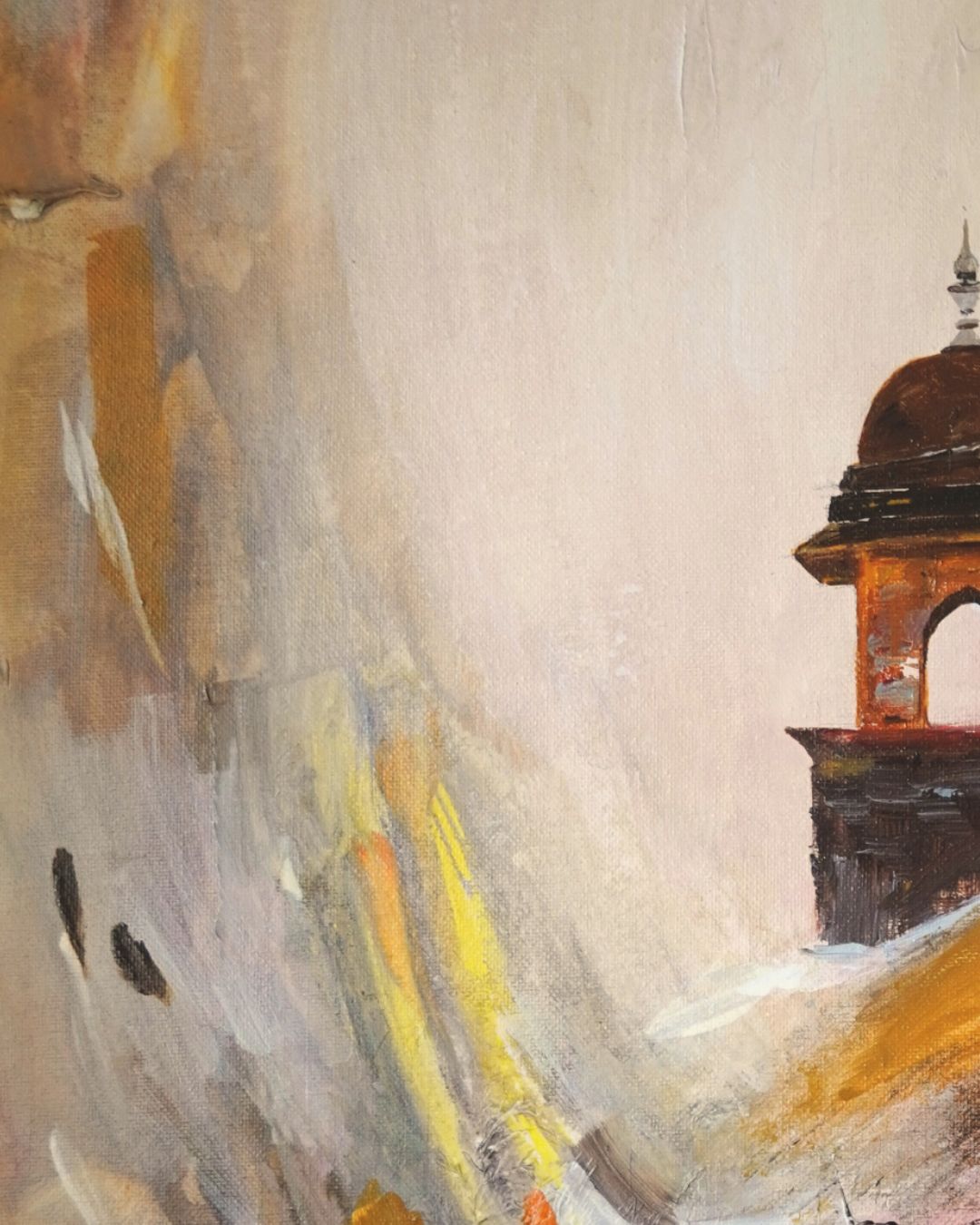 I was mesmerized by the grandeur and timeless beauty of Rajasthan’s forts the first time I came here for my wedding. Their majestic presence against the desert sky felt like standing face-to-face with history itself. This painting honors their enduring strength, capturing the weight of stories etched in stone and the courage it takes to stand firm through centuries. Each wall whispers tales of valor and legacy, inviting viewers to witness the spirit of resilience that defines Rajasthan. This painting honors enduring strength, the weight of stories etched in stone, and the courage to stand firm through time.