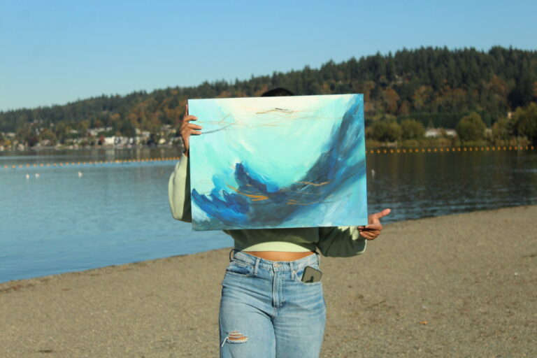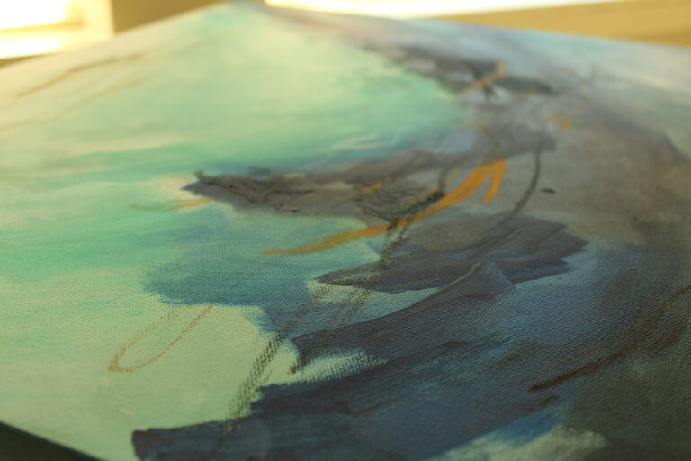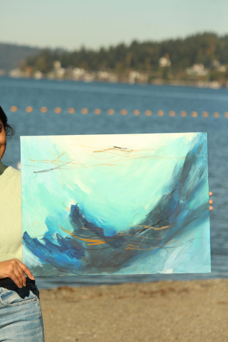Dive into a world of sun-kissed serenity with “Surface,” an abstract mixed media artwork that captures the pulse of the ocean wave. Inspired by the magic of snorkeling just beneath the surface, where waves break and sunlight shimmers, this piece invites you to savor the delicate dance between movement and stillness.